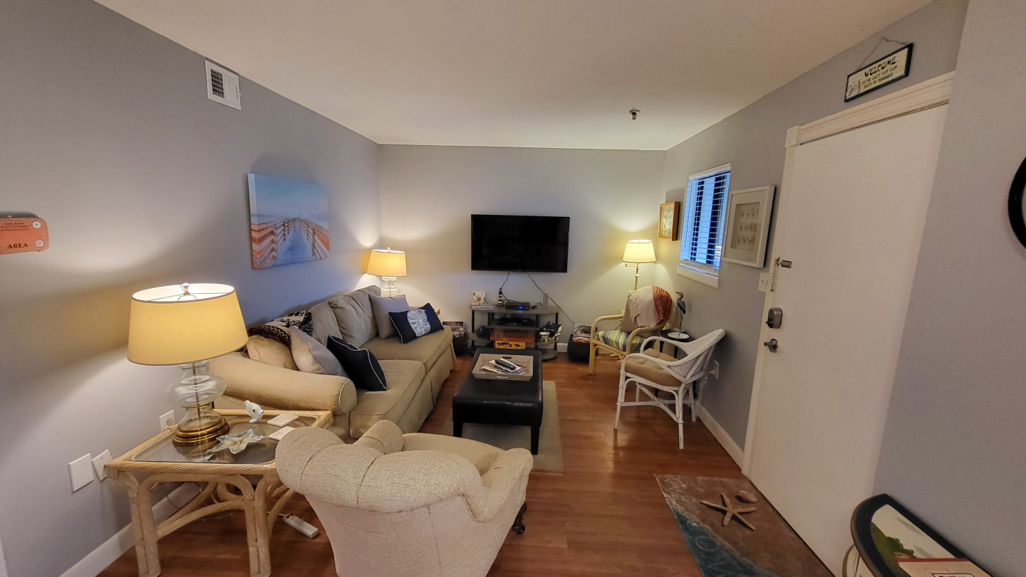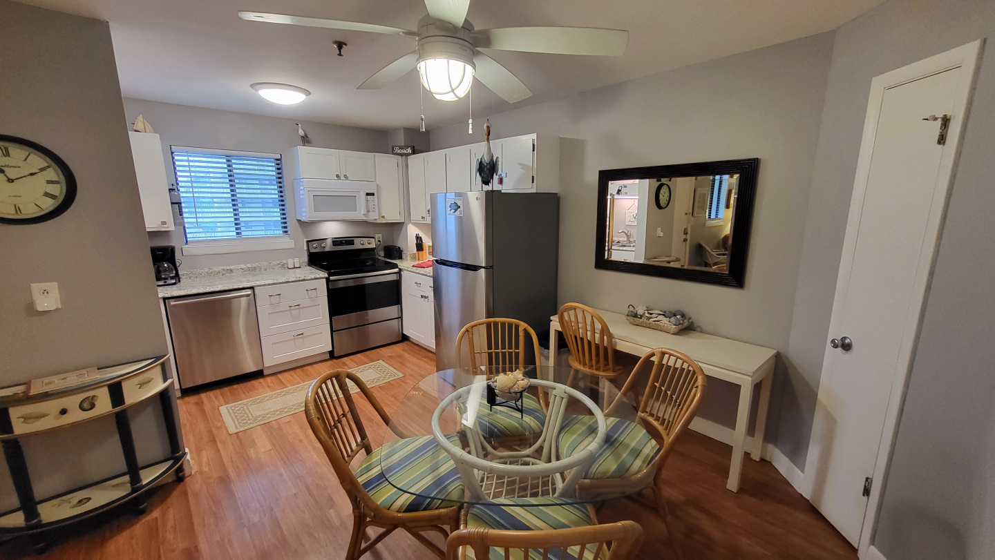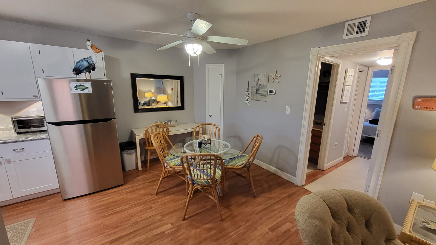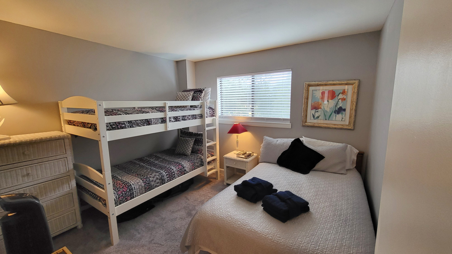 This villa has 2 full bedrooms, 2 full baths, living, dining and kitchen areas. There is a queen bed in the master bedroom and a full bed plus a twin bunk bed in the 2nd bedroom. There are flat panel TVs in both bedrooms. The kitchen has full size appliances, dishwasher, convection toaster oven, microwave, air fryer, disposal, crockpot, blender, Keurig Coffee maker and there's a regular coffee maker if you prefer old school! The kitchen is full stocked with dishes, pots, pans and you will find some spices in the cabinets and condiments in the refrigerator. Any food products in the condo are free for your use but check expiration dates. The condo has free 400 mbit wireless internet. If you need anything printed while you are here, just email Jeff a .pdf and we can drop it off. All three of the flat panel TVs have ROKU sticks to access the Spectrum channels. You can easily login to your own streaming services and watch what you like just like being at home. There are six tennis courts, an outdoor pool and a picnic area with charcoal grills in our building. Three of the tennis courts are marked for pickleball and we have a couple of rackets in the toy closet if you want to give it a try. The condo is non-smoking and pets are absolutely NOT allowed anywhere on property! There is a smoking area downstairs at the picnic area and at the outside corner of building one facing the ocean. Our resort has a beach boardwalk leading to our ocean-front cabana and Coco's on the Beach! You can ride your bike from end to end (bikes must be walked in-season), take a leisurely 15 minute stroll or ride the free seasonal golf cart shuttle to the beach. At night, there are foot lights in case you want to enjoy the beach by moonlight or enjoy the cabana night life, food and drink. There are no stairs to climb and the boardwalk leads right out onto the best, and most private beach on the entire Island! You don't cross any streets or dodge any cars to get to our beach. Our beach is onsite, uncrowded and incredibly beautiful! There is also the onsite restaurant in building one overlooking the big outdoor pool under new management for 2024. We also have bike rentals available onsite. New for 2025, the outdoor pool in building one is now heated in April/May and Oct/Nov when daytime temperatures are high enough for swimming. Operating dates vary. The indoor pool is heated year-round. We love Hilton Head Resort and hope you will bring your family to enjoy the best beach vacation bargain on Hilton Head Island. Stay with us and you'll have money left over to enjoy all the island has to offer! Just about everything you could want is onsite or an easy walk or bike ride away. Read our guest comments page and see just how much families enjoy staying in our condos at Hilton Head Resort!